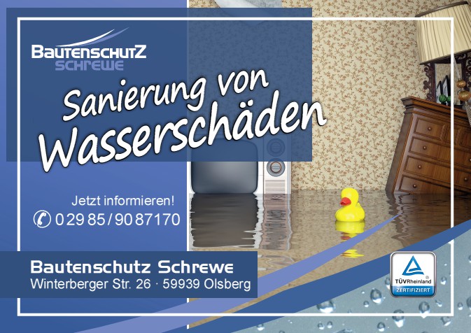 Wir sind seit nunmehr über 20 Jahren für unsere Kunden in Bestwig, Meschede, Brilon, Warstein, Olsberg, Winterberg und im gesamten Hochsauerland im Einsatz. Sie erreichen uns 24 Stunden am Tag! Wir regeln Ihren Schaden von der ersten Besichtigung über die Sanierung bis zur Abrechnung mit Ihrer Versicherung. Wir setzten bei einem Schaden auf moderne und ausgereifte Technik, unsere Trocknungsgeräte entsprechen der neuesten Generation und sind mit geeichten Stromzählern ausgestattet.
